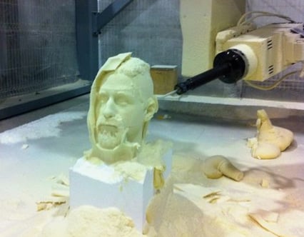 Realización de cabeza de un caballero mecanizado sobre poliuretano. Se ve en la CNC gigante