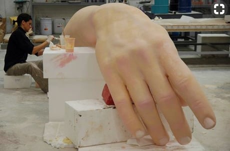 Mano Gigante, a partir de un scan 3D de una mano real mecanizado sobre poliespan, trabajo de superficie y acabado en pintura escenográfica. Se encuentra en el Museo de Arte Contemporáneo de Sevilla.